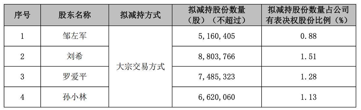 九强生物此前公告,公司于近日收到持股5%以上股东、董事长邹左军,持股5%以上股东、董事刘希,持股5%以上股东、董事罗爱平,持股5%以上股东、董事孙小林分别出具的《股份减持计划告知函》。减持计划公告之日起十五个交易日后的三个月内(即6月10日至9月9日)实施。