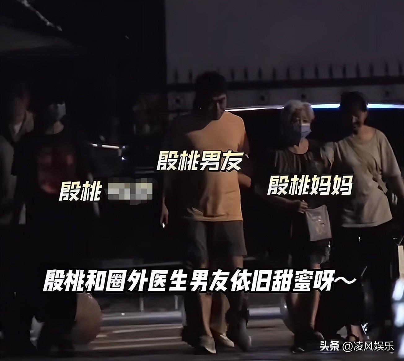 还有一次是被偶遇殷桃带着妈妈和男友一块出门,氛围相当和谐。